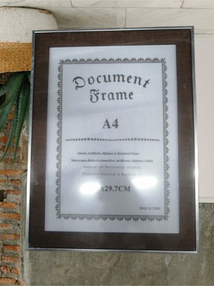 Cadre photo élégant en bois de taille A4 (21x29.7cm). Idéal pour diplômes, certificats ou art décoratif. Parfait pour la décoration intérieure ou bureau.