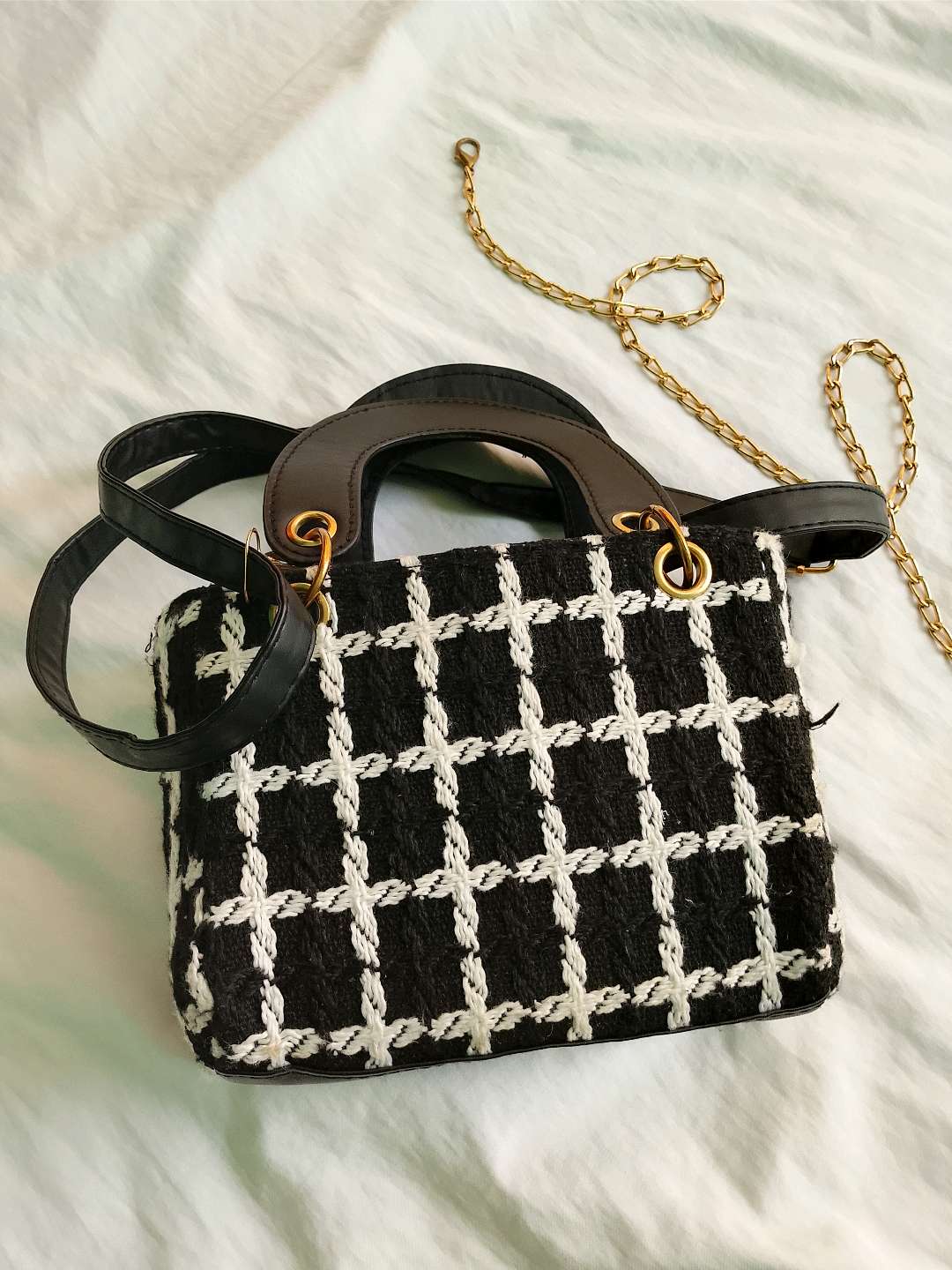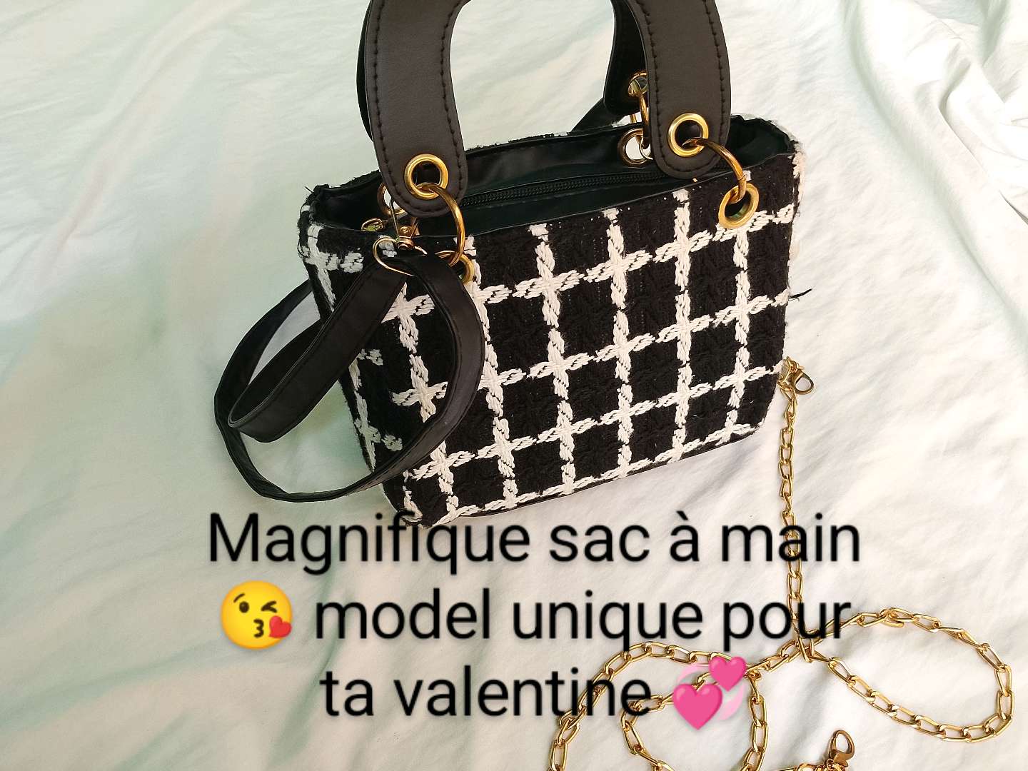 chic sac à main Primark noir et blanc, avec manche bandoulière très propre de l'intérieur comme l'extérieur jamais utilisé ; reçu comme un présent Venu de France. je vends car j'en ai plusieurs. idéal pour les petites sorties en cas ça fait habillé !!! viens on va s'entendre forcément