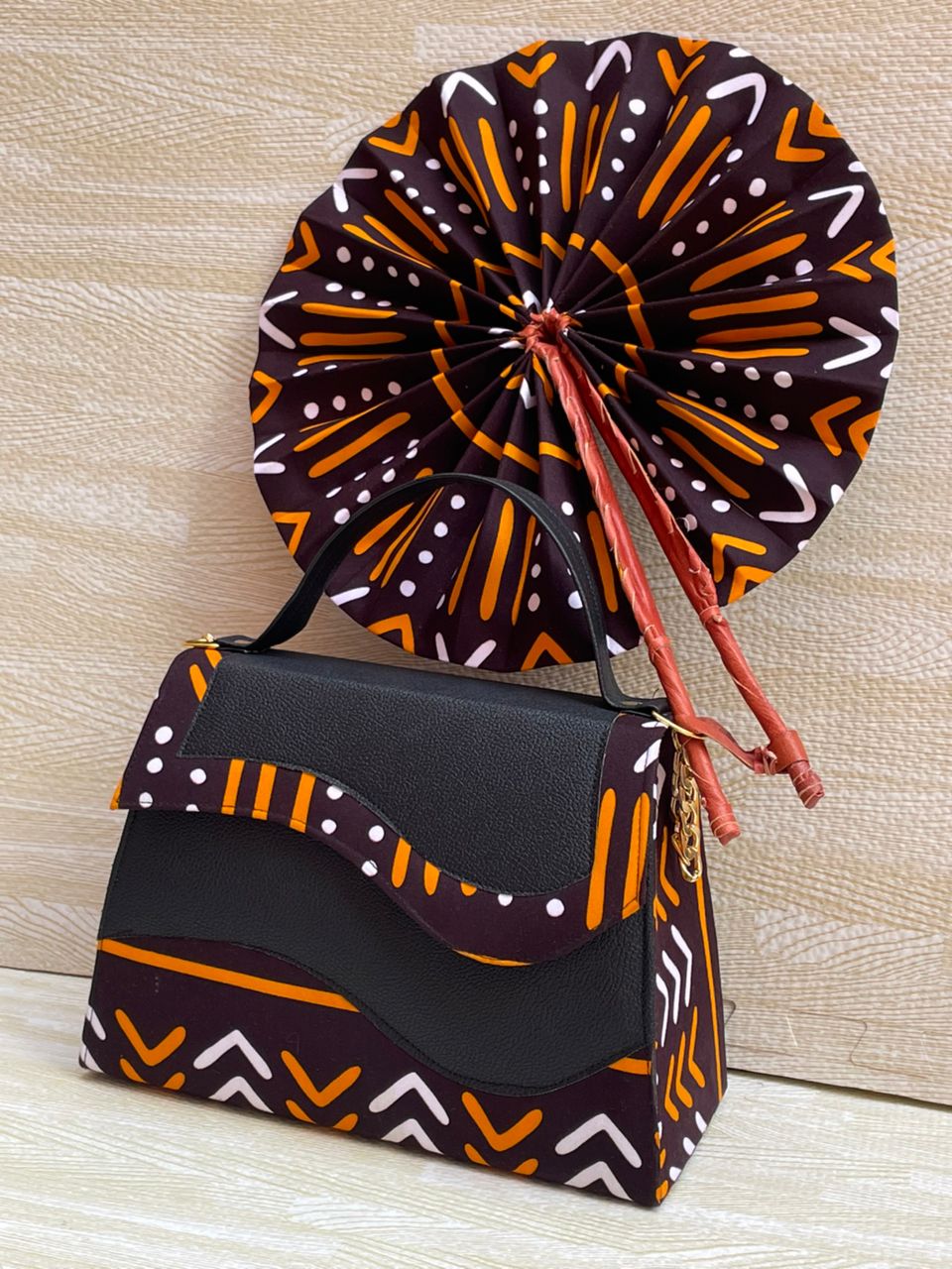 Aujourd’hui, choisis le sac africain avec éventail assorti :