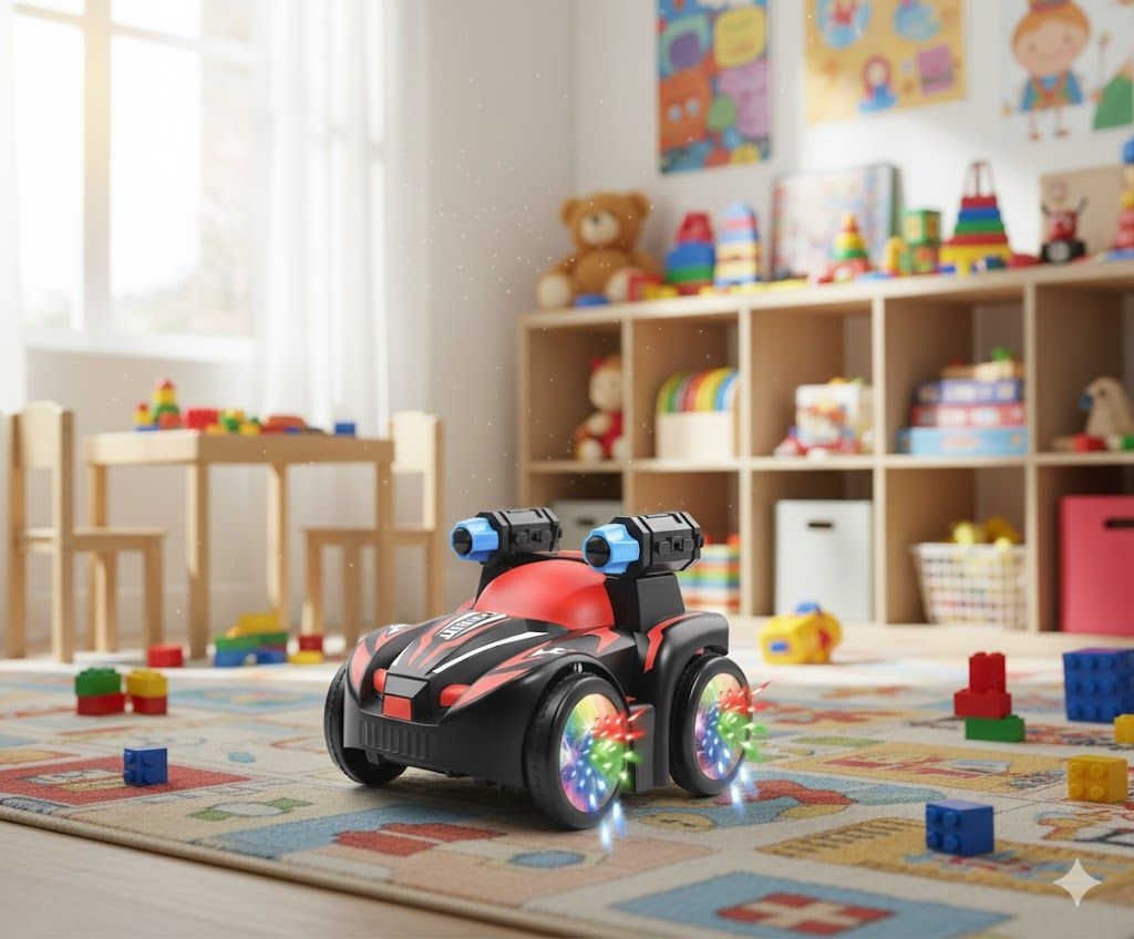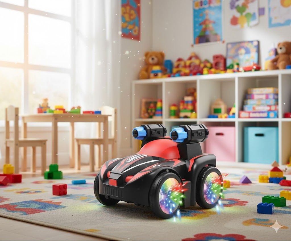 Le produit présenté est une voiture cascadeuse électrique (Electric Stunt Car) de la marque Junyuanda Toys. Voici les détails disponibles sur ce type de jouet :