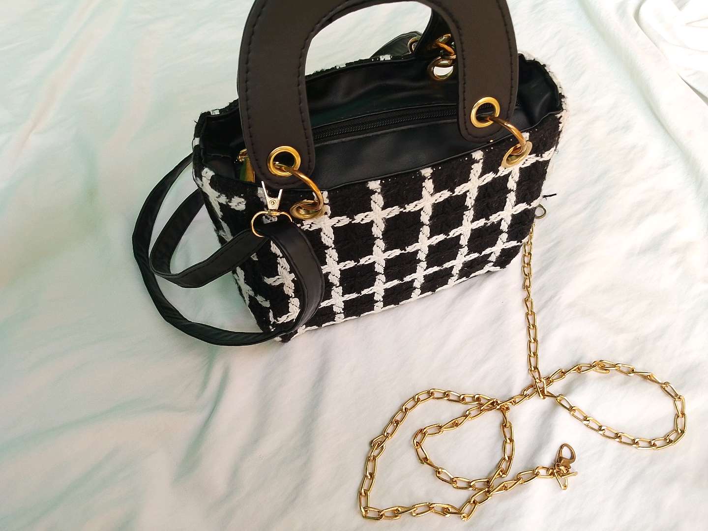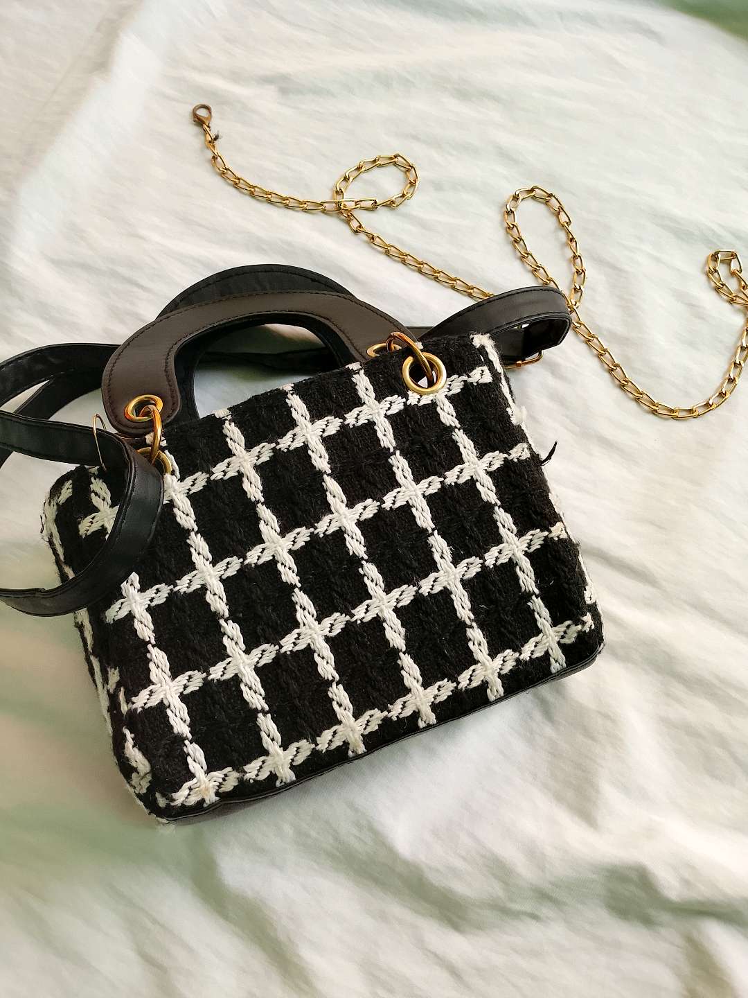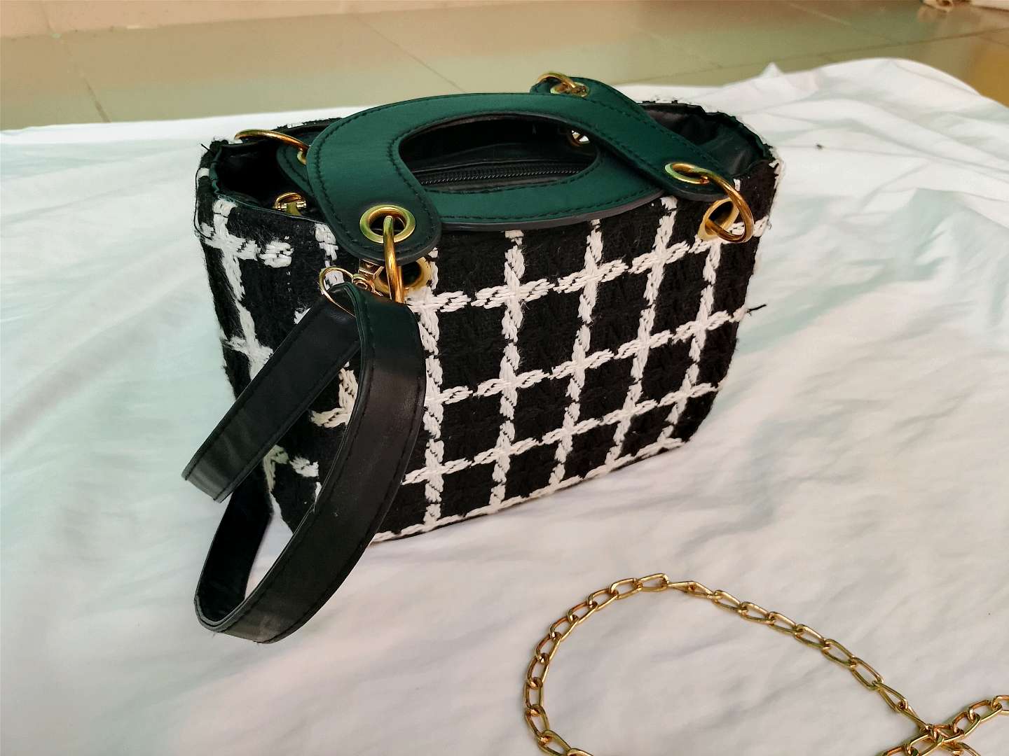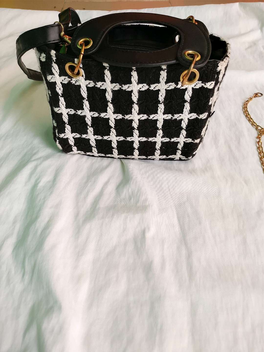 chic sac à main Primark noir et blanc, avec manche bandoulière très propre de l'intérieur comme l'extérieur jamais utilisé ; reçu comme un présent Venu de France. je vends car j'en ai plusieurs. idéal pour les petites sorties en cas ça fait habillé !!! viens on va s'entendre forcément