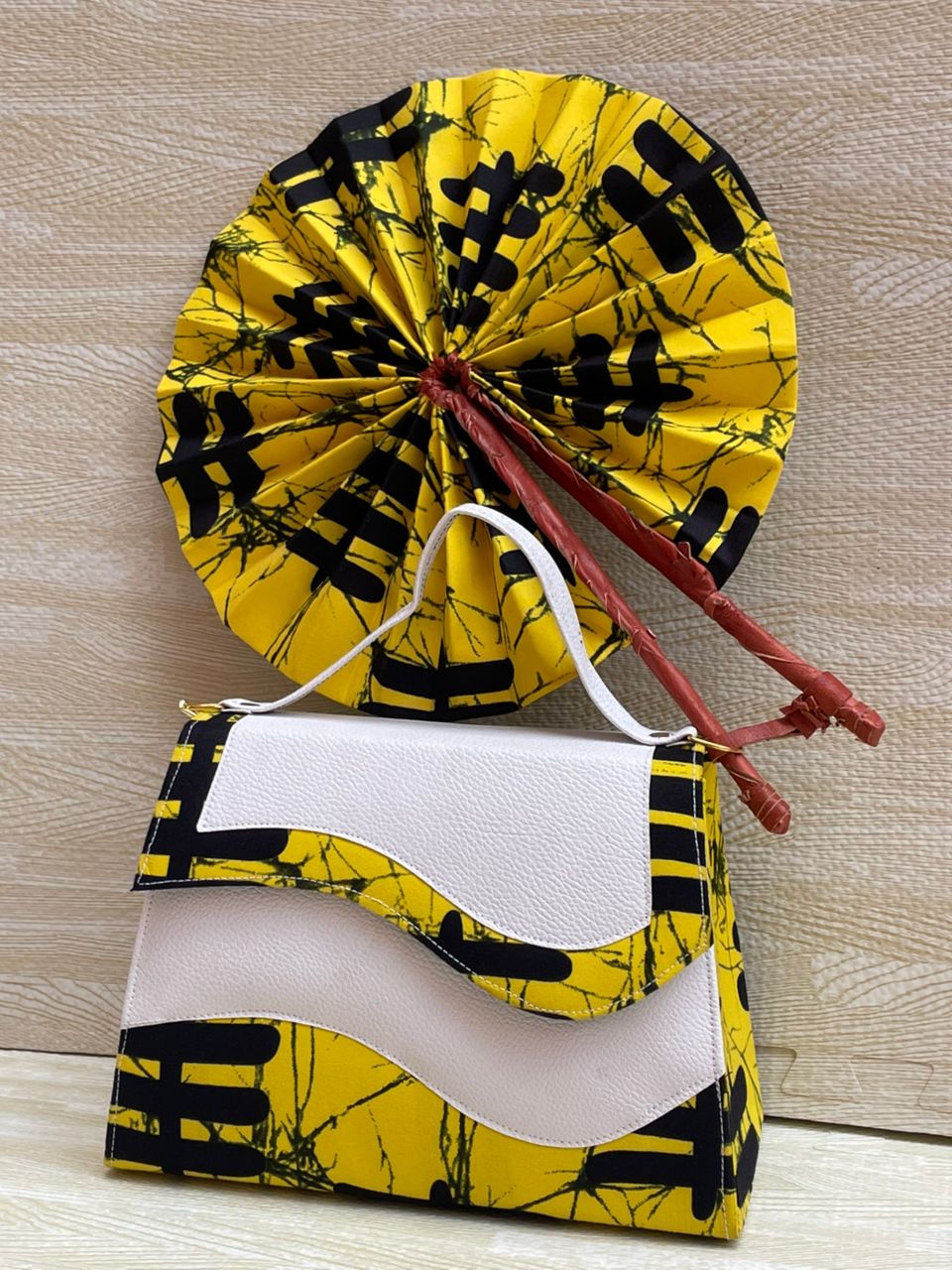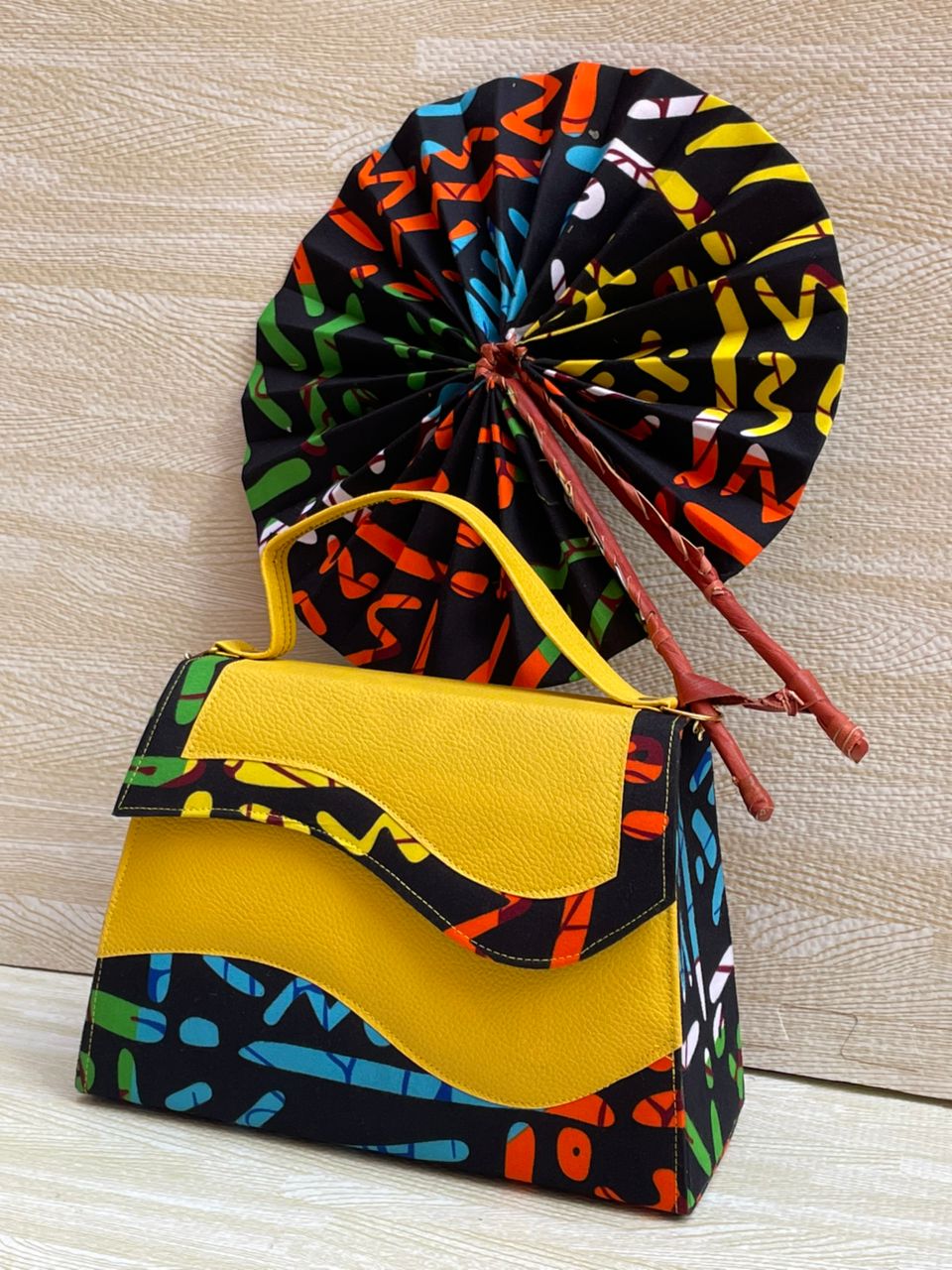 Aujourd’hui, choisis le sac africain avec éventail assorti :