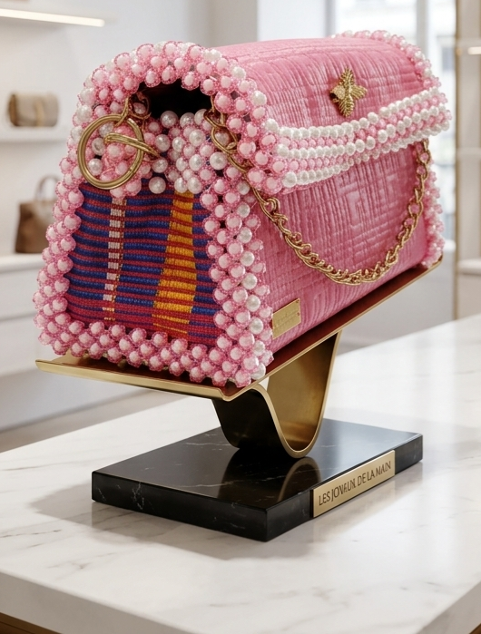Sac rose en perles /simili cuir/ kente, alliant tradition africaine et modernite, pour apporter une touche particuliere d'elegance a votre style. Ideal pour vos sorties, ceremonies,mariage, bapteme ...